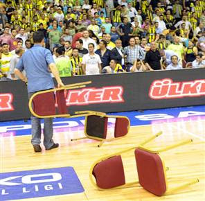 başladı. kısacası kaybeden kavga etmeye başladı. ardından 4.maçı kaybeden fener artık daha fazla çirkinleşmeye ataman da elde ettiği bu gücü daha fazla moral bozmaya kullanmaya başladı. ve herşeyin koptuğu 5.maçın sonu; ömer onan denen basketbol aklından yoksun 100 metrecinin yaptığı saçmalık ve bu ülkede nasıl basketbol oynadığını anlayamadığım zaza enden ekolü rasim başakın su şişesi ile hakem masasını tacizi, bağıra bağıra tüm fenerlilerin küfürleri açıkça belli etti ki son maç abdi ipekçi de efes kazanırsa bu iş hiç ama hiç hoş bitmeyecek. ve nihayet 6.maç geldi çattı , efes hakikaten shumpert ve thornton saha liderliği ile iyi oynadı, peker hayatının en iyi ilk yarısını çıkardı ve efes şampiyon oldu ama ortada ne basketbol kaldı , ne destek, ne sevinç ne de başka bir şey. bir adam kaya pekere saldırdı , kaya peker buna vurdu, ergin ataman ve charles smith tekme yedi, sahaya şişeler atıldı, sandalyeler söküldü,fırlatıldı , soyunma odaları basıldı fakat herkes maç sonunda son yılların en güzel serisi yalanları ile olayları kapatmaya çalıştı. evet son yılların en güzel kavga,tahrik ve kaybedenin de artık basketbol da kavga etmeye alıştığı bir seri yaşadık.bunu yaşatan başta ergin ataman,mahmut uslu, rasim başak ve kaya peker olmak üzere olayların içinde bulunan herkesin allah belasını versin diyorum. bu basketbolu bu hale getiren ve her kaybettiğinden sonra bu mafyalaşmayı italya'da öğrendiğini düşündüğüm ergin ataman defol bu ülkeden. yöneticilik olarak her maç sonrasında birilerinin üzerine yürüyen uslu defol basketbolun içinden. her maça şut sokmak veya ribaund
